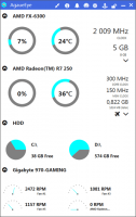 Приложение позволяет вывести на экран дополнительную панель с набором полезной информации. К примеру, можно отобразить актуальную нагрузку на ОЗУ, видеокарту, процессор, скорость работы вентиляторов, температурный режим и так далее.Такие панели часто используют опытные игроки. Можно быстро получать нужную информацию или менять параметры, которые облегчают процесс прохождения.