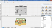 Приложение содержит встроенный каталог мебели, бытовой техники и элементов декора. Для удобства навигации содержимое каталога разбито на категории, что заметно облегчает поиск нужного компонента. Добавление осуществляется путем перетаскивания на основную рабочую область.После добавления отображаются все доступные настройки – размер, ориентация, цвет, дополнительные элементы и другие свойства. При помощи мышки в любое время можно развернуть объект или переместить на другое место. Все изменения сохраняются в истории, есть возможность поэтапно вернуться на любой шаг.