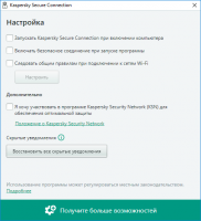В софте можно обнаружить небезопасные точки доступа, а также вы обезопасите себя, не подключаясь к ним. В экстренных случаях Kaspersky Secure Connection активирует вспомогательные механизмы защиты.