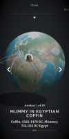 Все артефакты включают в себя текстовое описание и иллюстрации. Ещё можно посмотреть место на планете, где их обнаружили, и изучить историю находок с фактами о них. Пока что представлено только 10 самых известных достопримечательностей, но разработчики гарантируют появление новых интересных объектов.Дополнительно