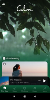 Данное программное обеспечение включает в себя целый перечень медитаций с голосовым гидом, дыхательные программы, аудио с расслабляющими песнями, мастер-классы, а также истории для сна. Ещё есть несколько десятков анимированных тематик с релаксирующими звуками, в числе которых шум дождя, водопад, треск костра и многое другое.Медитация может длиться от 3 до 25 минут. При их помощи можно проработать разные проблемы в виде низкой самооценки, отсутствия благодарности, трудностей в отношениях или плохой концентрации. Большинство функций открывается исключительно после приобретения подписки.