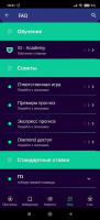 При желании человек способен обучиться прогнозированию. Для этого в мобильном приложении имеется специальная вкладка с обучающими материалами. Доступный в программе курс помогает не только анализировать будущие состязания, но и верно делать ставки, не допуская частых среди новичков ошибок. В результате прохождения подобного курса юзер сможет самостоятельно прогнозировать исходы состязаний.Особенности
