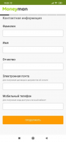 Приложение для Android помогает российским гражданам оперативно получить кредитные средства, используя онлайн кредит. Максимальный размер займа составляет сумму в 100 тысяч рублей. Деньги поступают на счет или банковскую карту заемщика, возможен вариант выдачи наличных средств.Кредит выдается со ставкой до 1% в сутки сроком до 18-ти недель. Чтобы использовать приложение, необходимо авторизоваться. Для этого требуется указать ФИО, телефонный номер, адрес почты, сумму получаемых доходов, занимаемую должность и некоторую другую информацию. Если на сайте moneyman.ru создан профиль пользователя, то можно войти в приложение, используя введенные прежде данные.