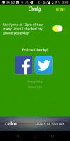 Checky – это программное обеспечение, помогающее проверять число включений портативного Android девайса. Приложение обладает англоязычным интерфейсом. Имеются оповещения со статистикой за последние сутки. В программе присутствует реклама.