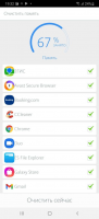 Основная оптимизация выполняется в несколько кликов. Для начала потребуется запустить сканирование, во время которого программа проанализирует все процессы, которые открыты в смартфоне прямо сейчас. Речь идёт про фоновые службы, открытые сервисы приложений и так далее. Они нагружают систему и заставляют смартфон работать существенно медленнее. После сканирования, можно в один клик остановить все фоновые процессы. Это не только сделает устройство быстрее, но ещё и освободит лишнюю оперативную память для более тяжёлых приложений.Очистка