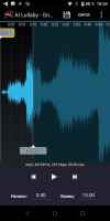 Утилита автоматически проверяет память пользовательского гаджета на предмет аудиоматериалов. Все обнаруженные программой файлы отображаются на стартовой странице. Следует заметить, что редактор умеет работать со многими расширениями, в том числе WAV, AAC, OGG и MP3.Единственная функция встроенного в приложение редактора – обрезка аудиоматериалов. При этом разработчики реализовали крайне простой способ обрезки. Юзеру достаточно указать таймкоды старта и завершения трека. Всё, что выходит за рамки указанного времени будет автоматически удалено. Также пользователю разрешается вручную выбирать точки начала и окончания композиции. Для этого в редакторе присутствует специальный ползунок.